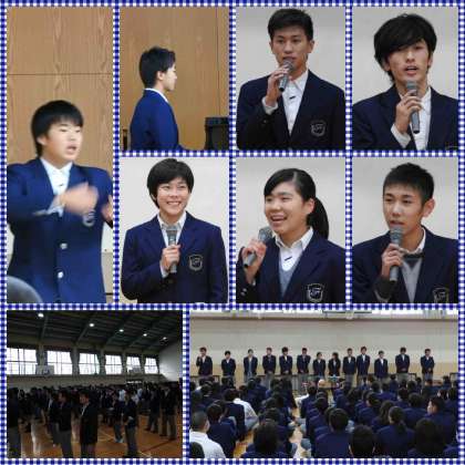 この1年間、藤中のために頑張ってくれた旧役員の人たちから全校生徒にメッセージを送りました。