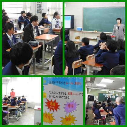 京都府警少年サポートセンターから講師の方を招き、各クラスで非行防止教室を行っていただきました。