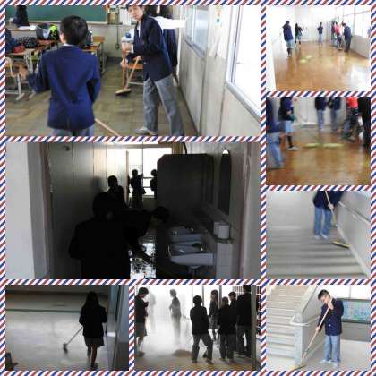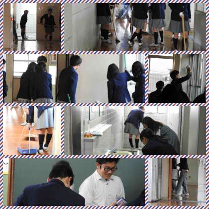 ぴかぴかデー 公開日 2016/12/06 更新日 2016/12/06 学校の様子 明日のオープンスクールに向けて小学生が気持ちよく体験ができるようにぴかぴかデーに取り組みました。 自分の持ち場をしっかり清掃してくれました。