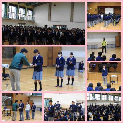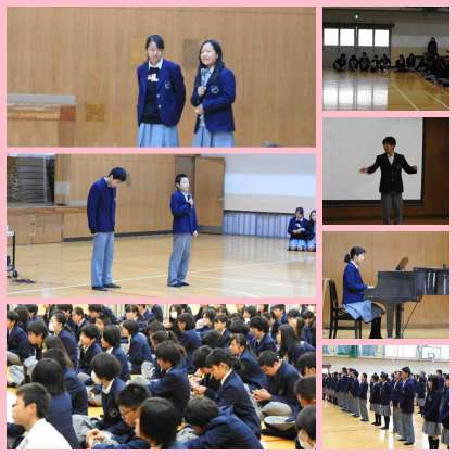 来年4月に最高学年に進級しますが、今まで先輩たちが一生懸命取り組んだ「校歌」をしっかり歌うことをこれからも継承していこうと代表生徒がみんなに呼びかけました。