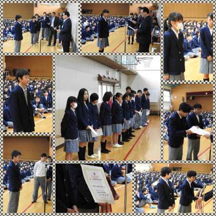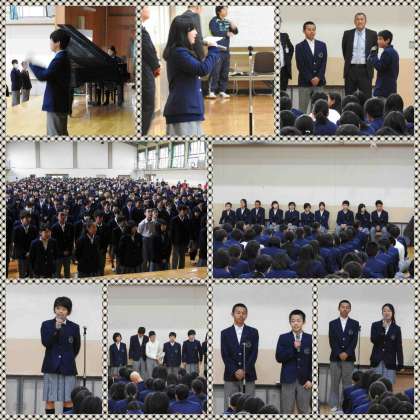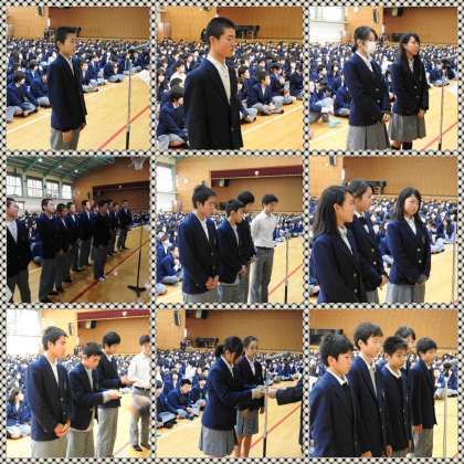 途中終了 全校集会1 公開日 2016/12/22 更新日 2016/12/22 学校の様子 今日で今年最後の登校日となりました。 生徒会から冬休みに向けての諸注意と1月に生徒会が取り組む内容について紹介がありました。 たくさんの人たちの協力をお願いします。