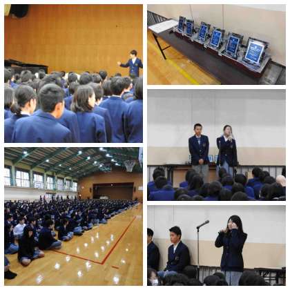 1時間目は全校集会が行われ、生徒会から全校生徒に向けてアピールがありました。