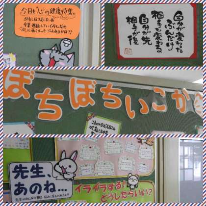 そんなときに保健室前の掲示物を見て元気を出してください。