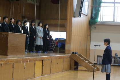 転退職される教職員の離任式が行われました。1,2年生の生徒の皆さんに加え、様々な年代の卒業生の方々が大勢お別れに来ておられました。