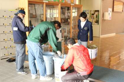 ゴミステーションでは、管理用務員さんや先生方が係としてスタンバイしています。