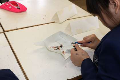 先輩達は、カッターで鉛筆削り修行中?