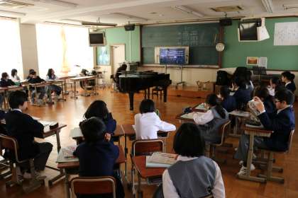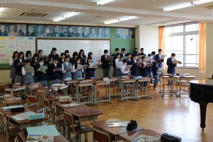 1年授業・・・音楽 公開日 2017/04/21 更新日 2017/04/21 1年生 ある日の音楽の授業♪ 歌を歌う前の、歌の背景のDVDを少し見てからの、歌の時間♪ 校歌〜♪翼をください〜♪エーデルワイス〜♪ 1年生は、まだ声も変わっておらず、ウィーン少年合唱団も真っ青な美しい歌声♪ 感動してしまいます。