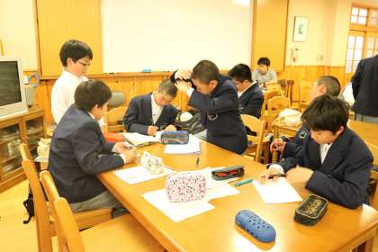 自然教室実行委員会・・・1年生 公開日 2017/04/27 更新日 2017/04/27 1年生 1年生の評議員と各種委員会の学年代表で自然教室実行委員会という組織をつくっています。 家庭訪問中の放課後の時間帯を使い、自然教室に向けての決まり作りや、しおり作りなどをしてくれています。 すばらしい校外学習にするため、みんなのために頑張って下さいね。