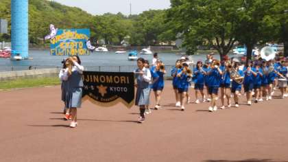 学校ごとのパレードや、京都府の合同合奏にも参加し、みんな汗だくです。