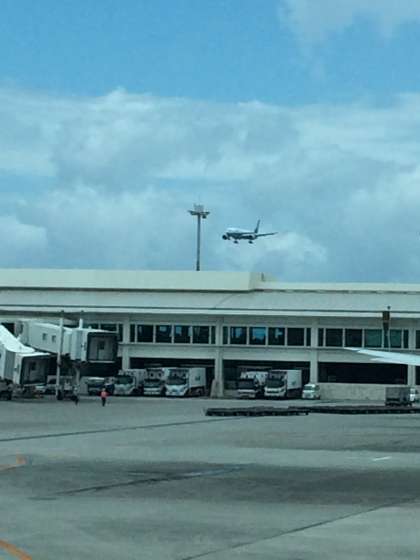 那覇空港上空で旋回して待ち、30分着陸が遅れたそうですが、那覇空港に到着しました。