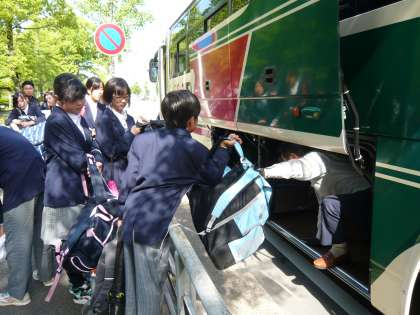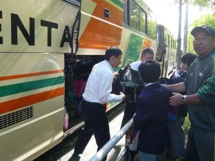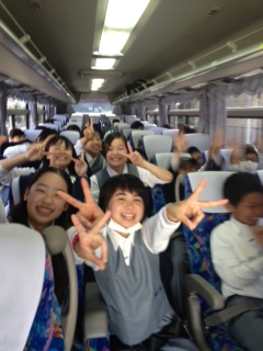 バスに乗り込んでいる様子です。 バスの中は…盛り上がっていますね!