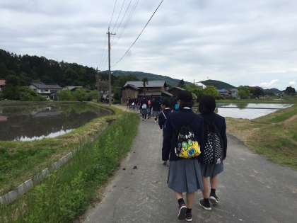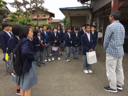 入村式を終え、 クラスごとにお世話になる民宿の方へあいさつをしました。 お土産もしっかり渡せました。