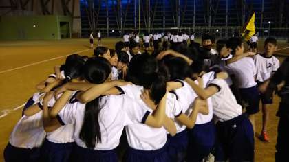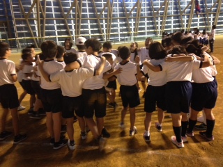 王様ドッジボールの前には、円陣を組んでいるクラスも。