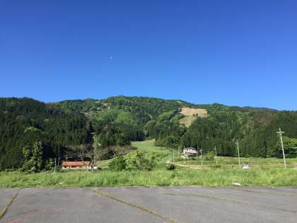 今からこの山に登ります。 文化委員は朝の集合前に、今夜のキャンプファイヤーの打ち合わせ。 楽しみです!