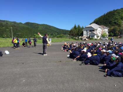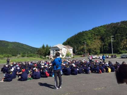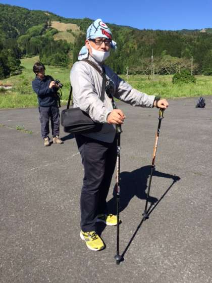 現地の方から、注意事項の説明を受けています。 担任も、登山準備バッチリ!?