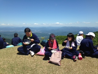 山頂で、お昼ご飯を食べました。 天気も景色もよく、最高!