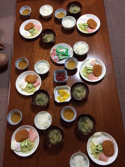 自然教室3日目の朝ご飯は…今日も美味しそう! あれ?密かに目玉焼きがハートですね♡❤♡