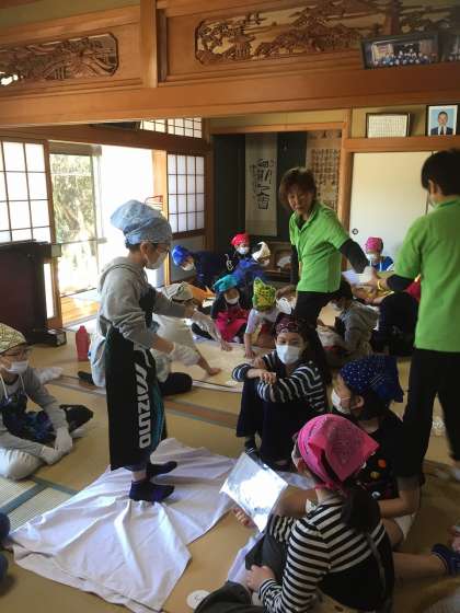 これぞ班活動! 協力して、美味しいうどんを作っています! みんなとても楽しそうです。