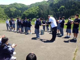 スポーツ大会の表彰式が行われています。 全クラスに賞状が渡されました。