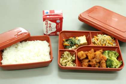 ちなみに、写真は本日の給食です。