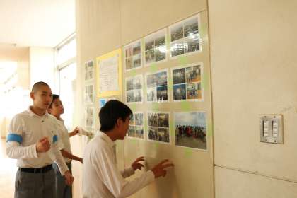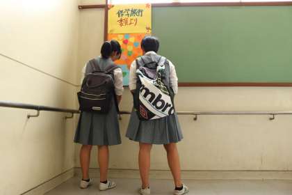 あちこちにありますが、生徒達が足を止めよく見ています。