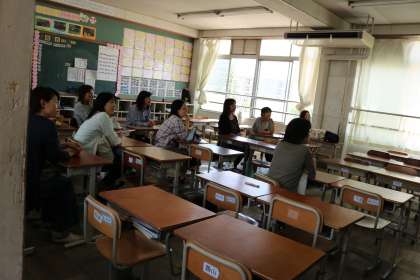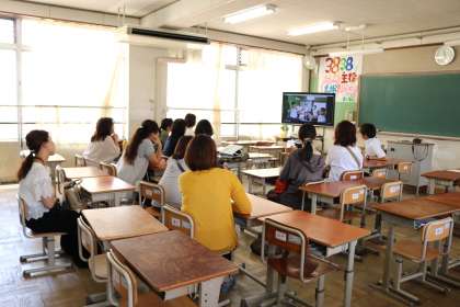 1年生は、教室で、自然教室の様子をまとめたDVDを見て頂き、クラスの様子などを話しました。