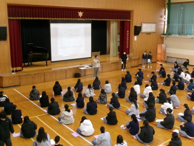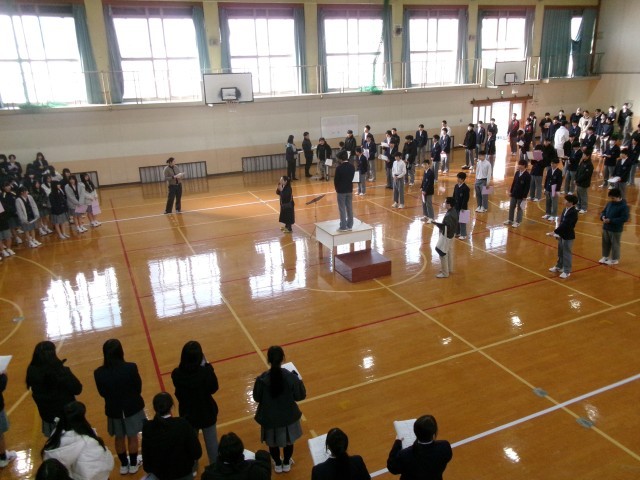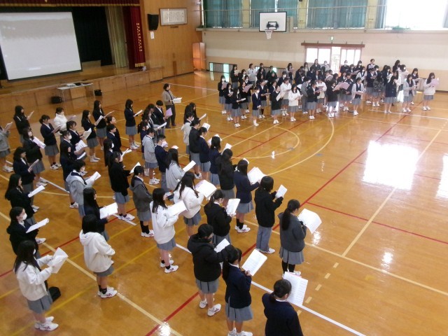 先週、2年生は3年生を送る会に向けて学年練習を行いました。クラス内で考えた3年生に向けて贈る言葉について評議員が集約したものを群読し、3年生に贈る歌の合唱練習をしました。お世話になった3年生に心を込めてしっかり発表できるように今後も練習に努めていってほしいと思います。