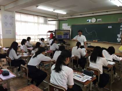 この進路学習会では,「高校ってどんな所?」から始まり,来ていただいた8校それぞれの特徴などを伺いました。生徒諸君からも,色々な質問が出たようです。