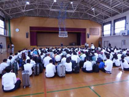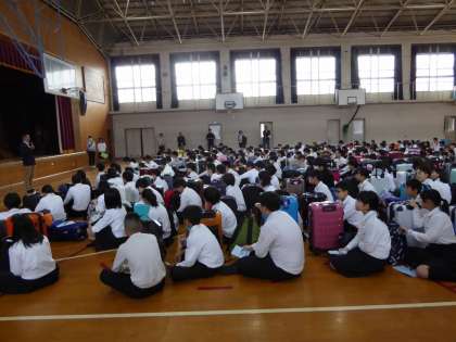 5月10日(木)肌寒い中、体育館で結団式を行いました。みんな緊張しつつも修学旅行に対する思いを膨らませていました。これから写真や情報が届き次第、掲示していきます。