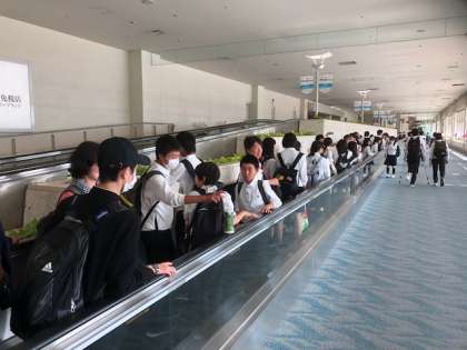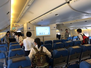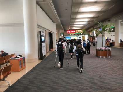 約2時間半遅れで、無事に那覇空港に到着しました。離着陸時には大きな拍手が起こっていました。これから、沖縄平和記念公園に向かい、平和セレモニーを行う予定です。