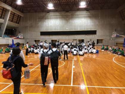 東村に到着しました。これから入村式です。予定よりも1時間程遅れたものの、民家の皆さんにはとても暖かい雰囲氣で待っていただいていました。この後は各家庭に分かれて民泊が開始されます。明日のお昼まで、沖縄の文化にしっかりと触れてきます。