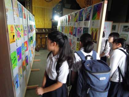 がんばって展示をしてくれたあと、作品を熱心に見ていました。美術部のみなさん、ありがとうございました。