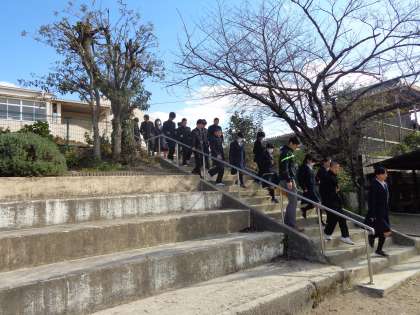 今日の5時間目に避難訓練を行いました。阪神淡路大震災から24年目にあたり、また大阪北部地震から約7ヶ月目ということもあり、みんな真剣な様子で避難訓練に臨んでいました。避難開始から全体がそろうまでの時間は前回に比べて大きく短縮していましたので、防災に対する危機意識も高まっているように思います。また、京都市役所防災担当の方からもお話をいただき、防災の大切さを学習しました。