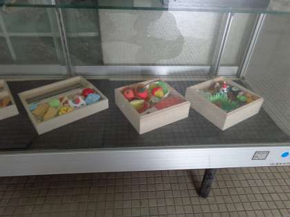どの作品もうまくできていて、本物と間違うくらいのすばらしいものばかりです。学校の正面玄関内にあるので、ぜひ見ていただければと思います。