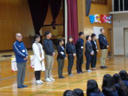 入場のあと、各学年の先生方の紹介がありました。授業や部活、委員会等でお世話になりますが、よろしくお願いします。