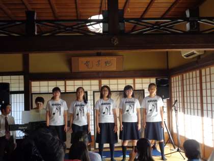 9月8日(日)に海寶寺で行われたコンサートで、特別出演という形で本校合唱部が出演させて頂きました。自分たちの演奏を聴いていただくうれしさと感謝で、夏休みの間も熱心に練習をしました。当日は多くの方に来ていただき、すばらしい舞台で精一杯歌わせてもらうことができました。貴重な経験をさせていただき、ありがとうございました。