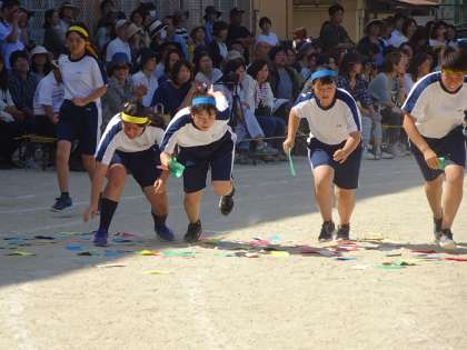 校長先生があげたカードと同じ色のカードを拾ってゴールを目指します。