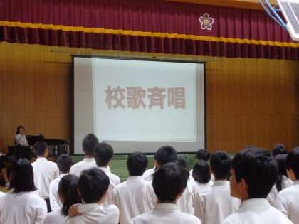 先週木曜日4限に後期認証式が行われました。校長先生から生徒会スローガンを含めたお話があり、そのあと校歌斉唱と新生徒会本部役員の認証書授与がありました。授与の時に本部役員の新旧引継があり、旧役員のみなさんには1年間の活動に対する労いの言葉と新役員のみなさんからは活動の決意と応援の言葉がありました。