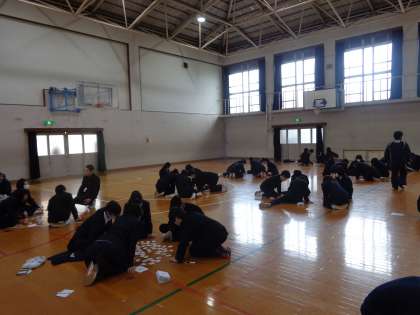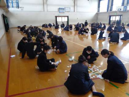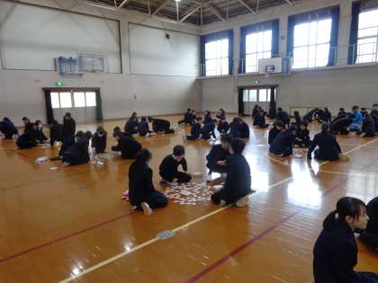 2年生ともなると、上の句に反応して取り札を取りに行く姿が見られ、ハイレベルな大会になりました。準備から後片付けまでしていただいた先生方や生徒の皆さん、ありがとうございました。