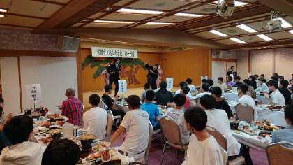 夕食の時間に,旅館の方がサービスで『うげうげ踊り』を披露して下さいました。