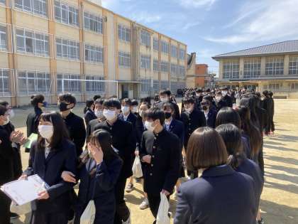 3年生が体育館を出ると,そこには1・2年生全員で作る花道が。