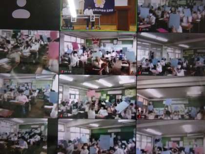 閉会後は,それぞれの教室で,各クラスの学級旗・学級目標を発表する動画も視聴しました。