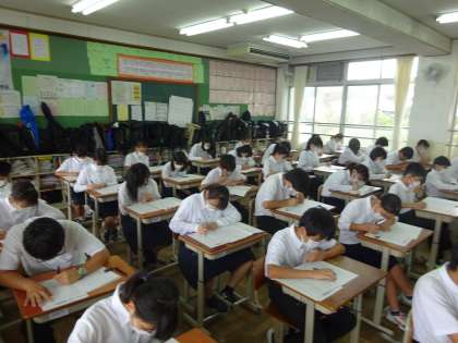 本日は全学年で「学習確認プログラム」の確認テストを実施し,終了後はさっそく自己採点にも取り組みました。