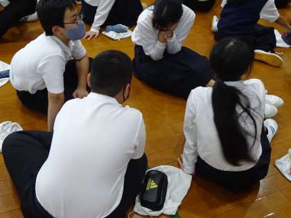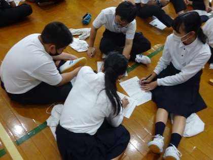 1年生が体育館で学年道徳の授業に取り組みました。