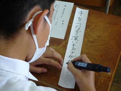 誰かが書いた五・七・五に続く返事を七・七で加え,ひとつの作品に仕上げています。