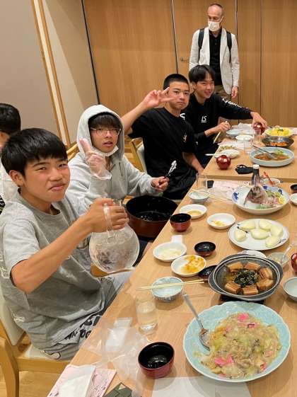 ホテルでの入所式を終え,夕食をいただいています。