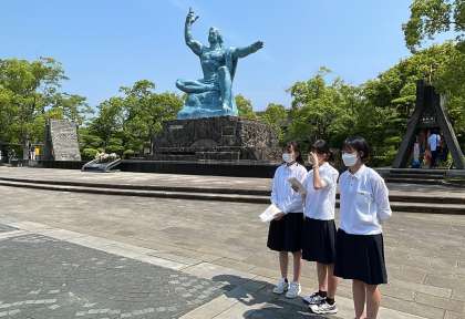 平和祈念像の前で,代表生徒の司会で『平和祈念セレモニー』を行いました。