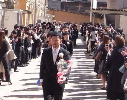 大勢の保護者の皆様に作っていただいた花道を通り抜け、卒業生が巣立っていきました。
