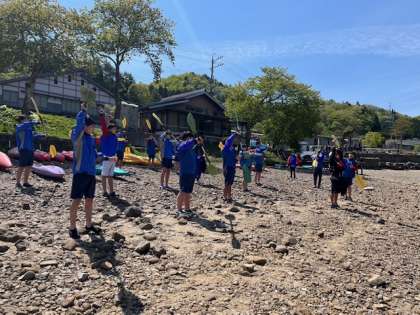 カヤックの説明を受けて、漕ぎ出すところです!