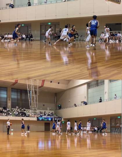 全中優勝校と準決勝あたりました。ドライブから合わせと息の合ったプレーに圧倒されましたが、スリーポイントを決め切り前半はなさらず戦いました。
